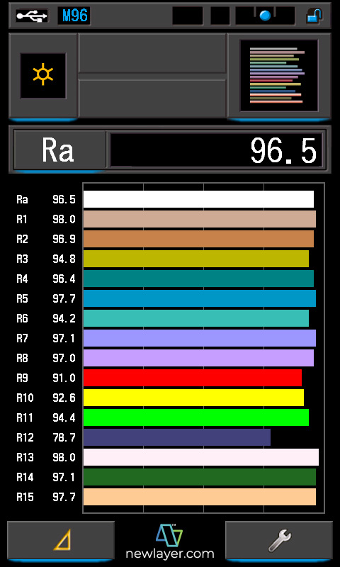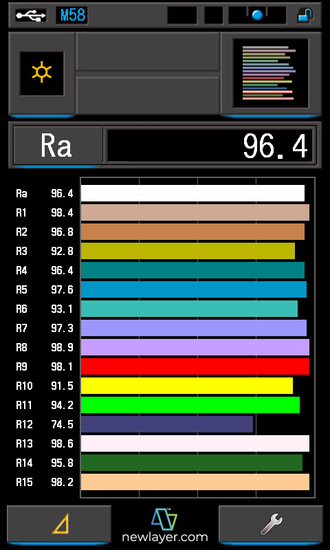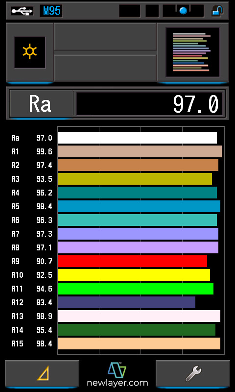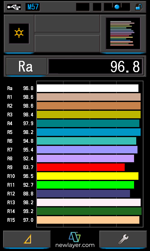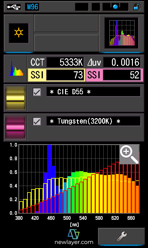 CRI?: 97.0/96.5 TLCI?: 96/98 TM-30?: @2054K/@9960K SSI (Tungsten)?: 82 SSI (D55)?: 73 |