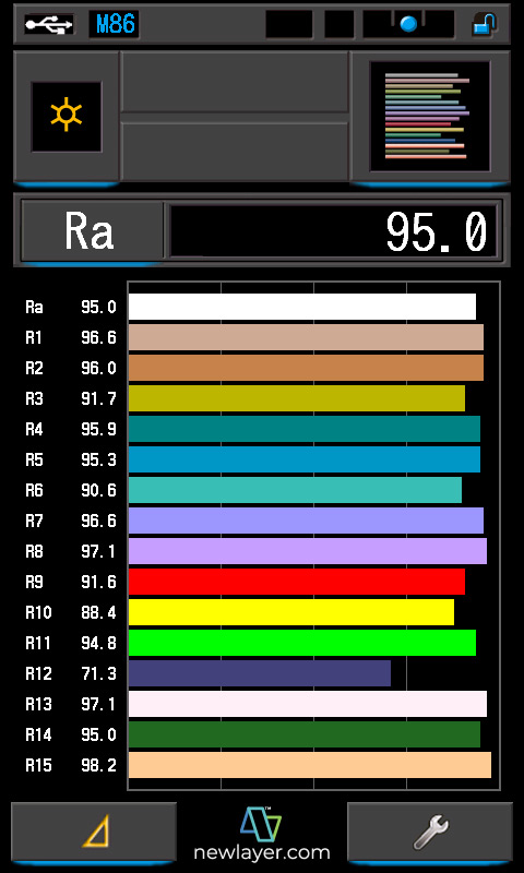 CRI?: 95.0 TLCI?: 94 TM-30?: @5696K SSI (D55)?: 70 |