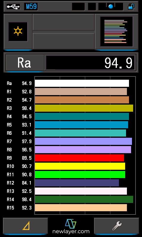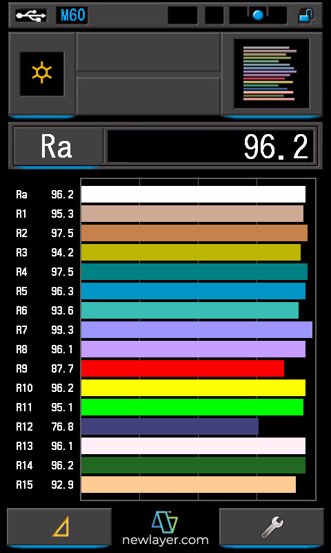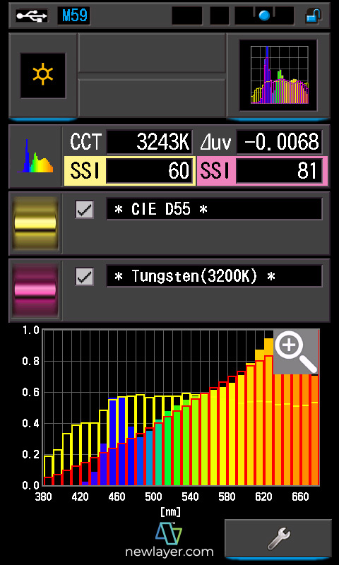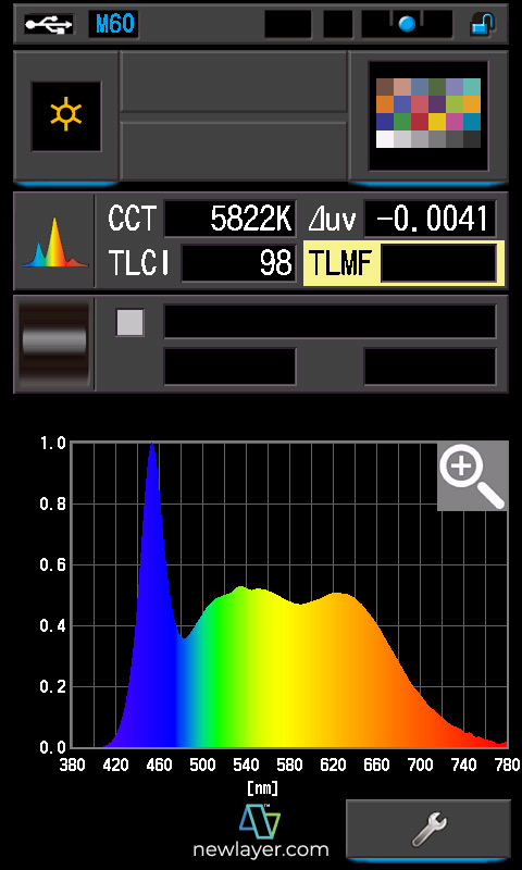 CRI?: 94.9/96.2 TLCI?: 98/98 TM-30?: @3243K/@5822K SSI (Tungsten)?: 81 SSI (D55)?: 72 |