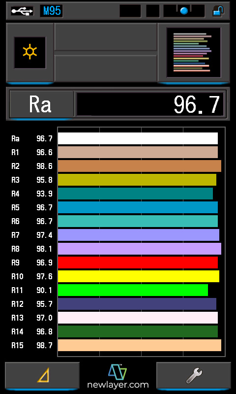 CRI?: 96.6/96.5 TLCI?: 95/98 TM-30?: @2800K/@6302K SSI (Tungsten)?: 83 SSI (D55)?: 73 |